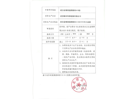 卫生许可批件