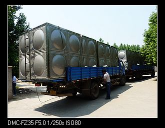 双层不锈钢组合保温水箱----正在上车出货,2011年5月发往安徽华炬太阳能公司工程施工项目,水箱容积14m3 数量50台,分批发货。水箱送达现场时受到甲方及监理的好评,认为组合保温水箱外观好、强度高,比圆柱保温水箱档次高,而且与建筑物的协调性好,值得推广采用。