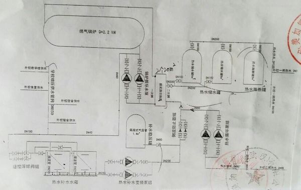 锅炉蒸汽热水设备系统分为承压式大循环系统和常压式小循环系统。承压式大循环系统指冷水水箱中储存的大量冷水通过变频水泵机组向整个闭式循环的管网中供应冷水,冷水与锅蒸汽在热交换器中换热产生热水,热水在承压罐中储存并同时在用户管网中循环过流,用户管网末端回水回流到热交换器前端。整个管网中的水温随着水循环的增长,水温会不断提高需要的设置水温,该设备最大的特点是24小时提供生活热水,即开即有热水,水龙头无大量冷水预流。